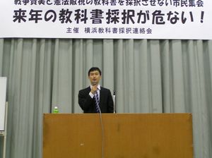 民主党・共産党の反対意見のなかで、今回の意見書案の不当性が指摘されるとともに、自由社版歴史教科書の内容の問題点や採択手続きの不明朗な経緯がわかりやすく紹介されたため、林横浜市長はじめ他の議員・職員が、自由社採択の問題点を認識する機会にもなったと思われます。
