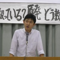 当日は広い会場もほぼ満席で、弁護士の穂積匡史さん(神奈川労働弁護団事務局長、日弁連両性の平等に関する委員会委員、「育鵬社教科書をどう読むか」執筆者)と元中学校教師でいられる大谷猛夫さんを講師に招いて、原発問題や憲法について育鵬社教科書がどのように扱っているか、他の教科書と比較しながら、その問題点を指摘して下さいました。